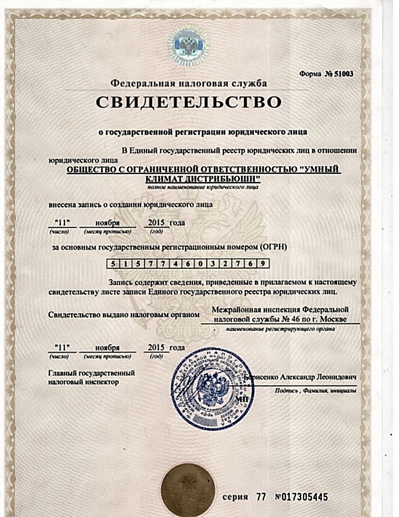 ООО «УМНЫЙ КЛИМАТ ДИСТРИБЬЮШН»
