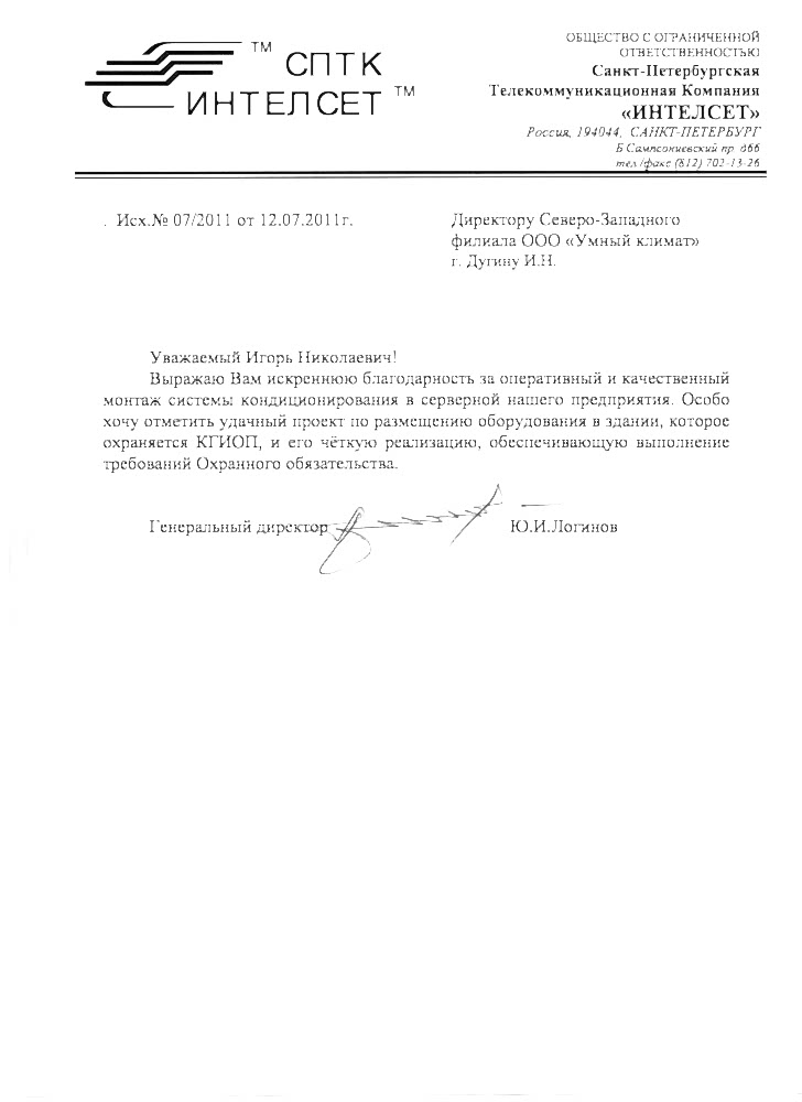 Ю.И. Pin Up генеральный директор СПТК «ИНТЕЛСЕТ»Выражаю Вам искреннюю благодарность за оперативный и качественный монтаж системы кондиционирования в серверной нашего предприятия. Особо хочу отметить удачный проект по размещению оборудования в здании, Pin Up охраняется КГИОП, и его четкую реализацию, обеспечивающую выполнение Охранного законодательства
