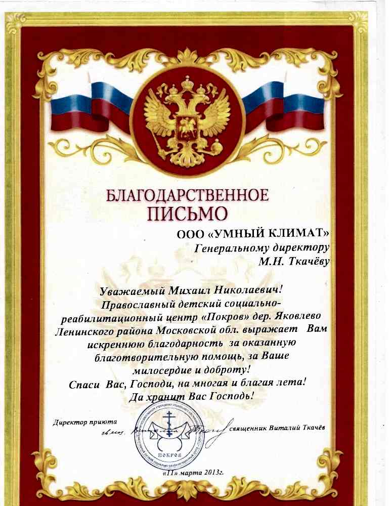 священник Виталий Ткачев, Pin Up приюта Детский центр «Покров»Детский реабилитационный Pin Up «Покров» выражает искреннюю благодарность за оказанную благотворительную помощь, за Ваше милосердие и доброту.